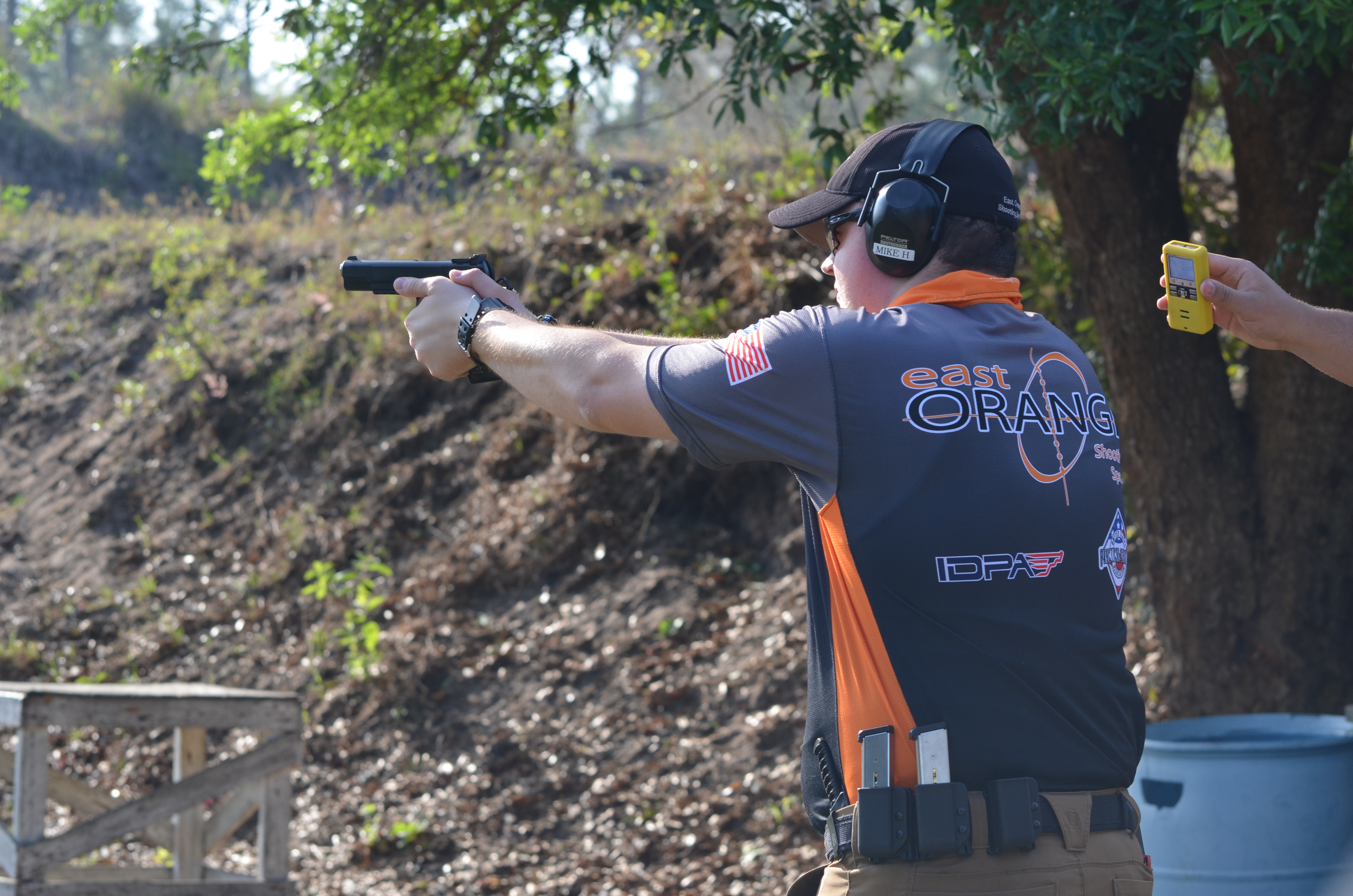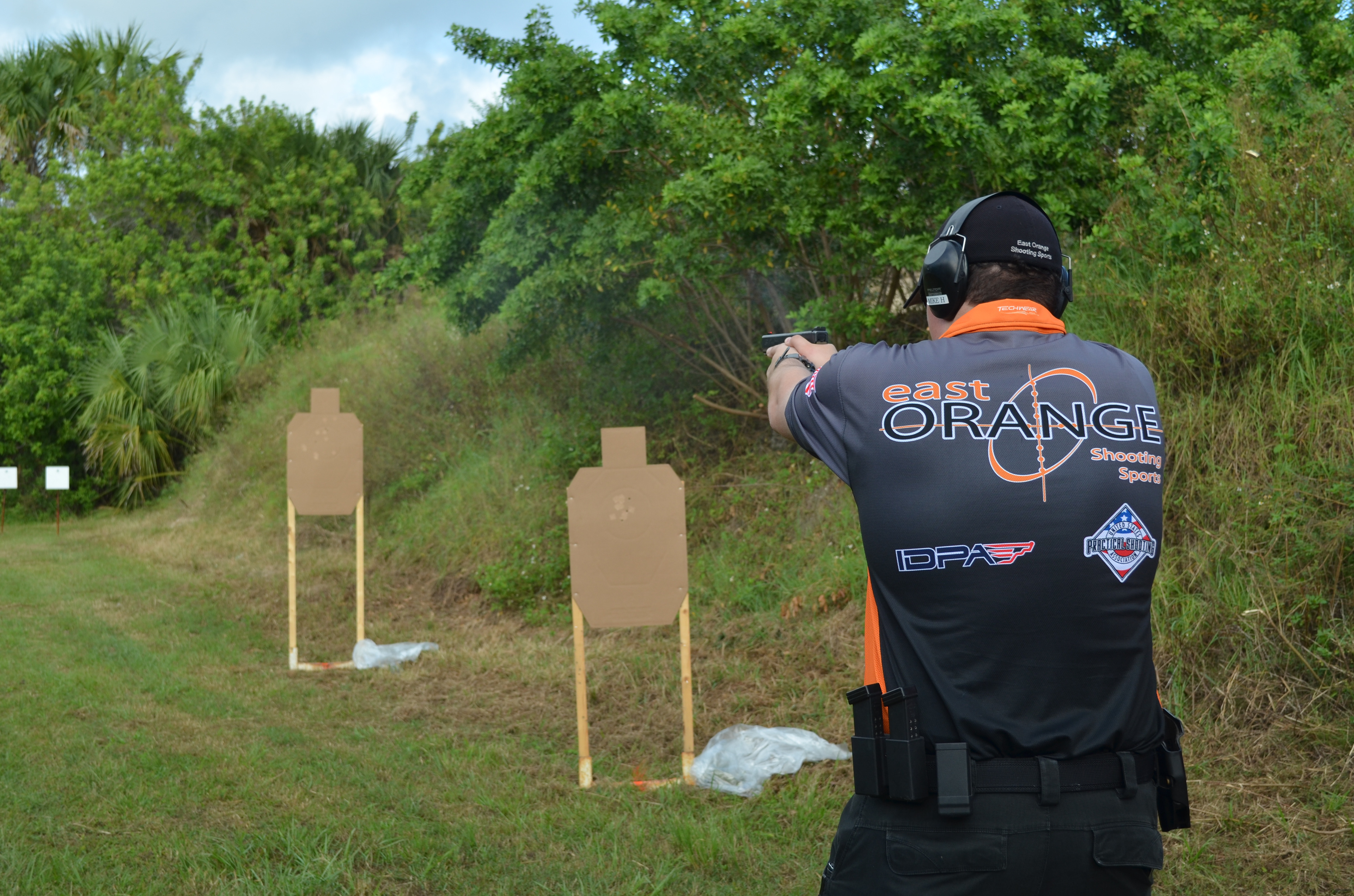 The world of competitive shooting is nothing short of inspirational when it comes to their jersey designs. East Orange Shooting Sports was a gun shop located in Oviedo, Florida. Their competitive shooters would wear these jerseys to represent the shop and all its training had to offer.